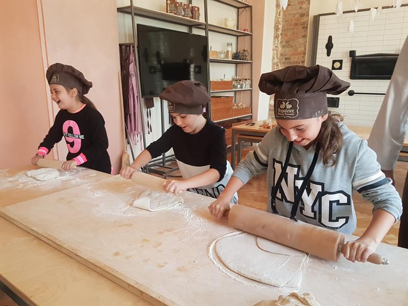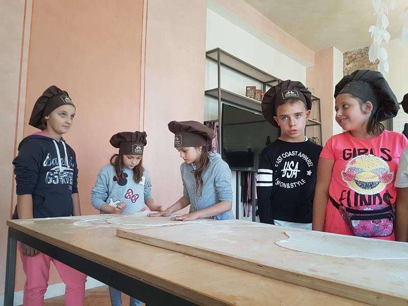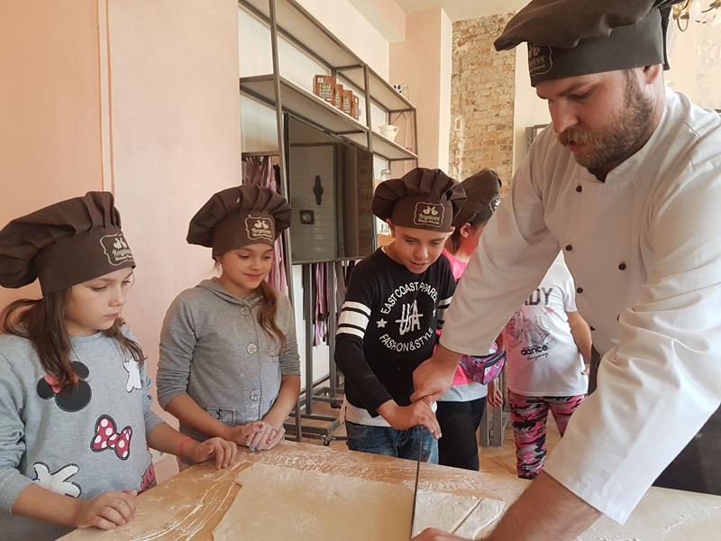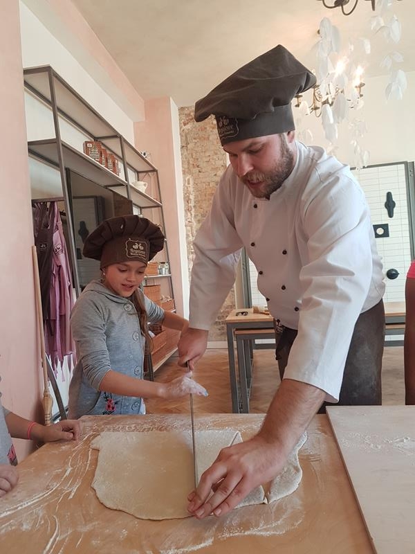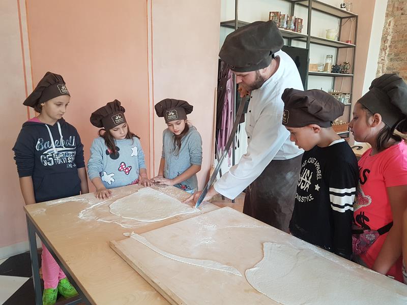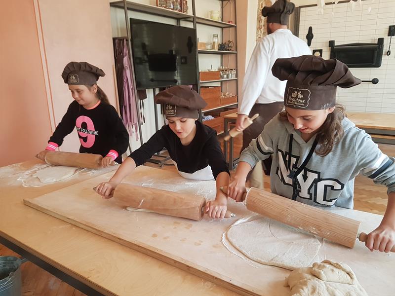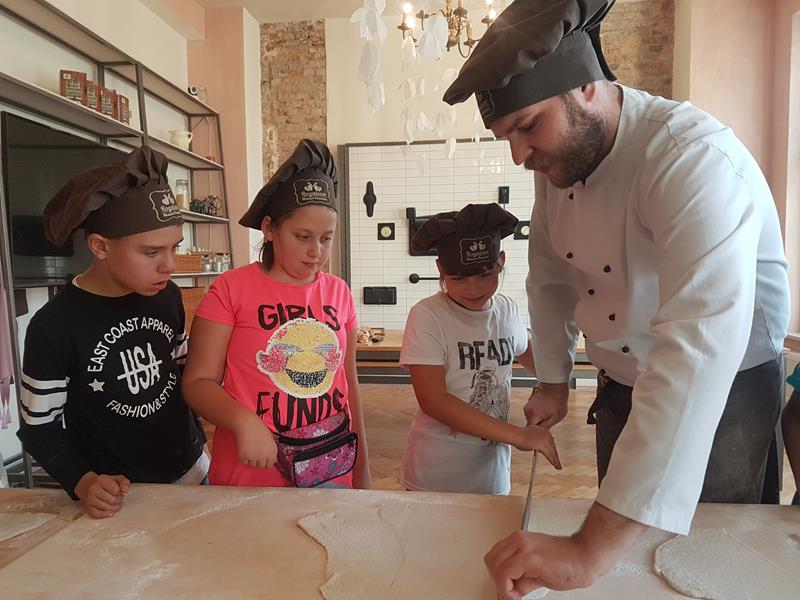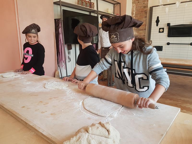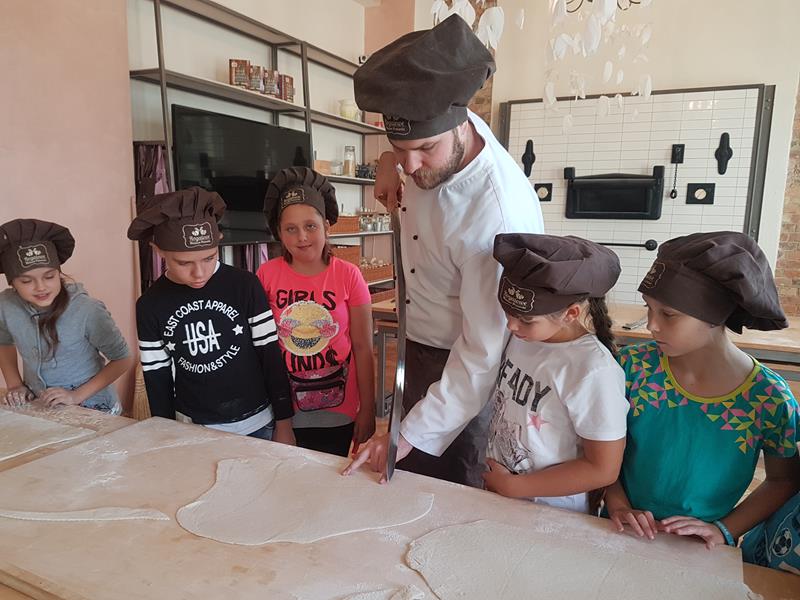 Na obiad były dwa naleśniki z mięsem, ketchupem i do tego sok. Obiad był bardzo dobry. Następnie poszliśmy robić rogale. Było tam fajnie. Mieliśmy czapki wysokie. Pan z wąsem ciął rogale szablą i mówił, że palce spadają do wiadra. Zobaczyliśmy, jak się robi poznańskie rogale. Pan powiedział, że mamy zgadnąć, ile waży prawdziwy marciński rogal. Dwie osoby zgadły, że 250 gramów i dostały prawdziwego rogala. Wszystkie dzieci też dostały rogale do zjedzenia, ale po połowie. Na koniec pan pokazał nam na filmie legendę o rogalach. Kiedy skończył się film, podziękowaliśmy panom za pokazanie wszystkiego. Poszliśmy do autokaru. Z Poznania wyjeżdżaliśmy o godz. 15, a w Gnieźnie byliśmy ok. 16. Na wycieczce było bardzo fajnie. Wszystko mi się podobało, a najbardziej labirynt ,,Blubry 6D”.